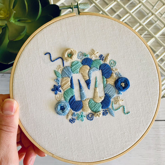 Digital download. Custom letter/initial embroidery hoop art PDF pattern with instructions. Personalised letter wall decor project