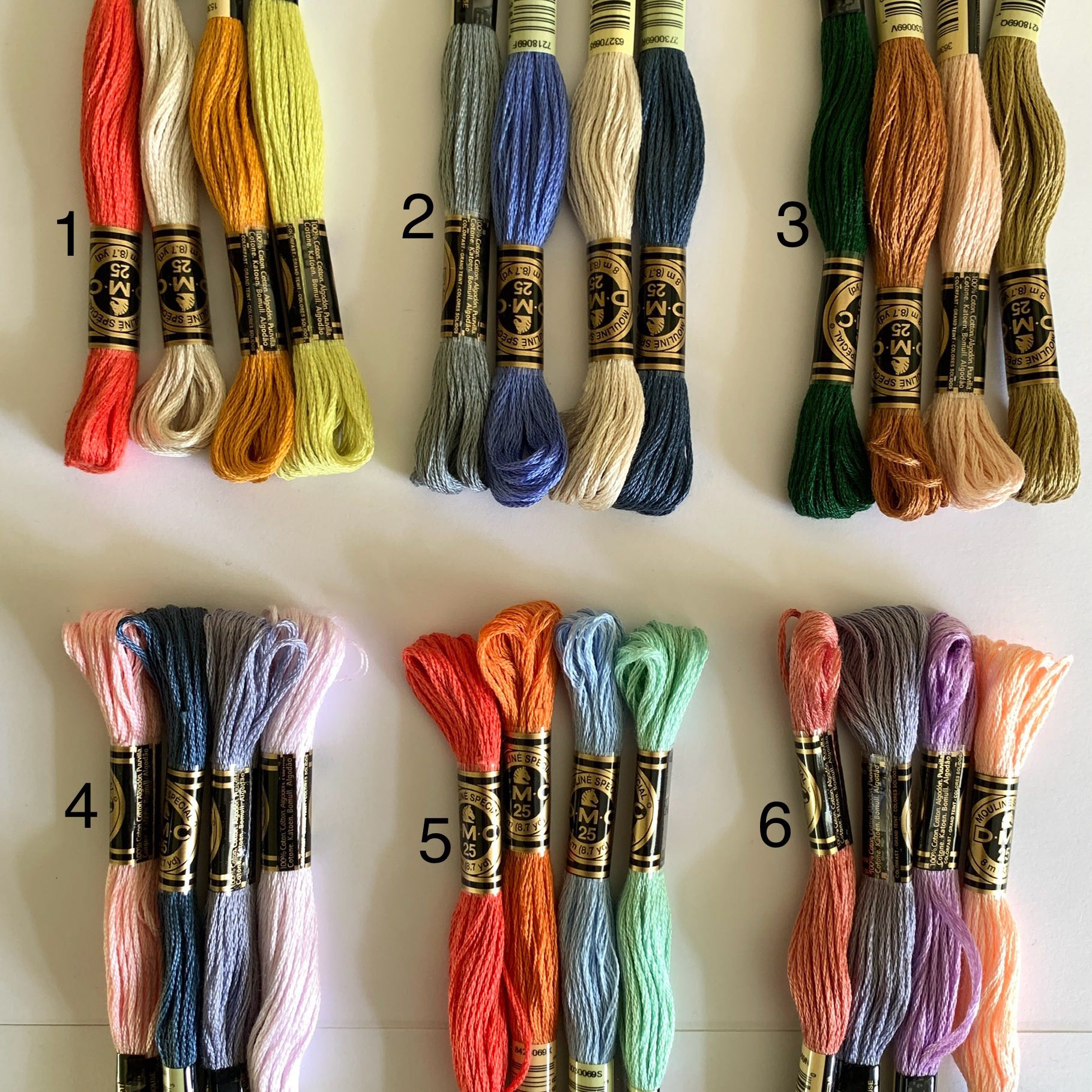 - Coloured cotton threads with wooden pegs to help store