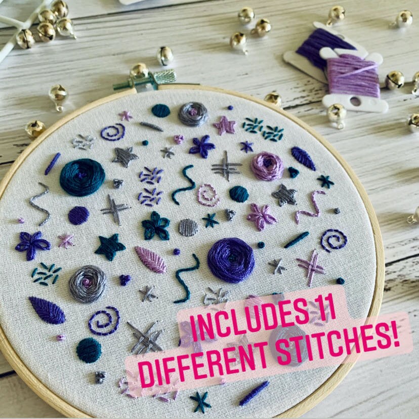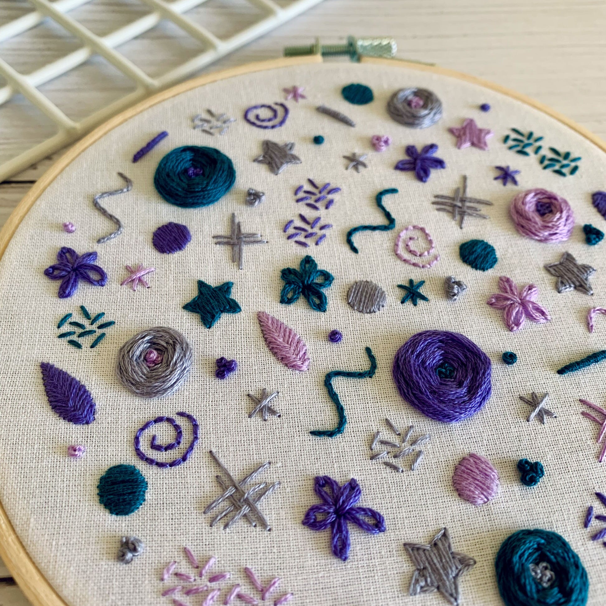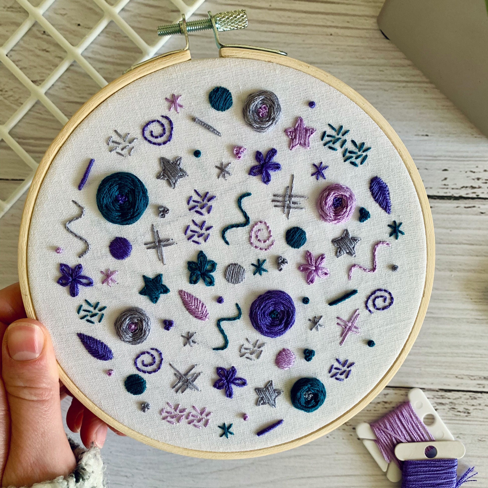 Digital download. 11 different stitches beginner doodle embroidery hoop art PDF pattern with instructions