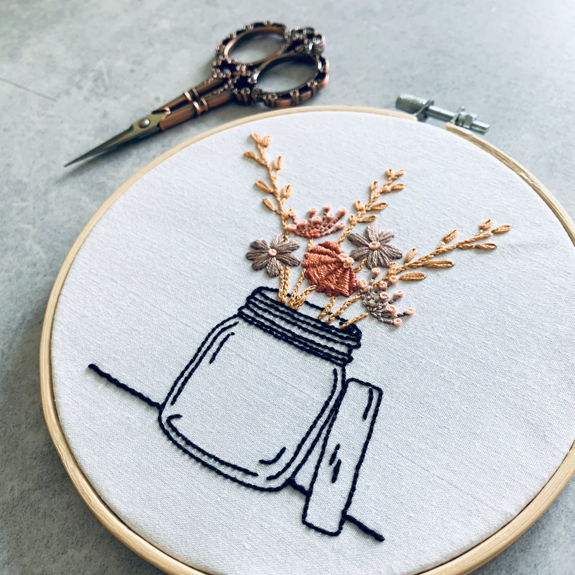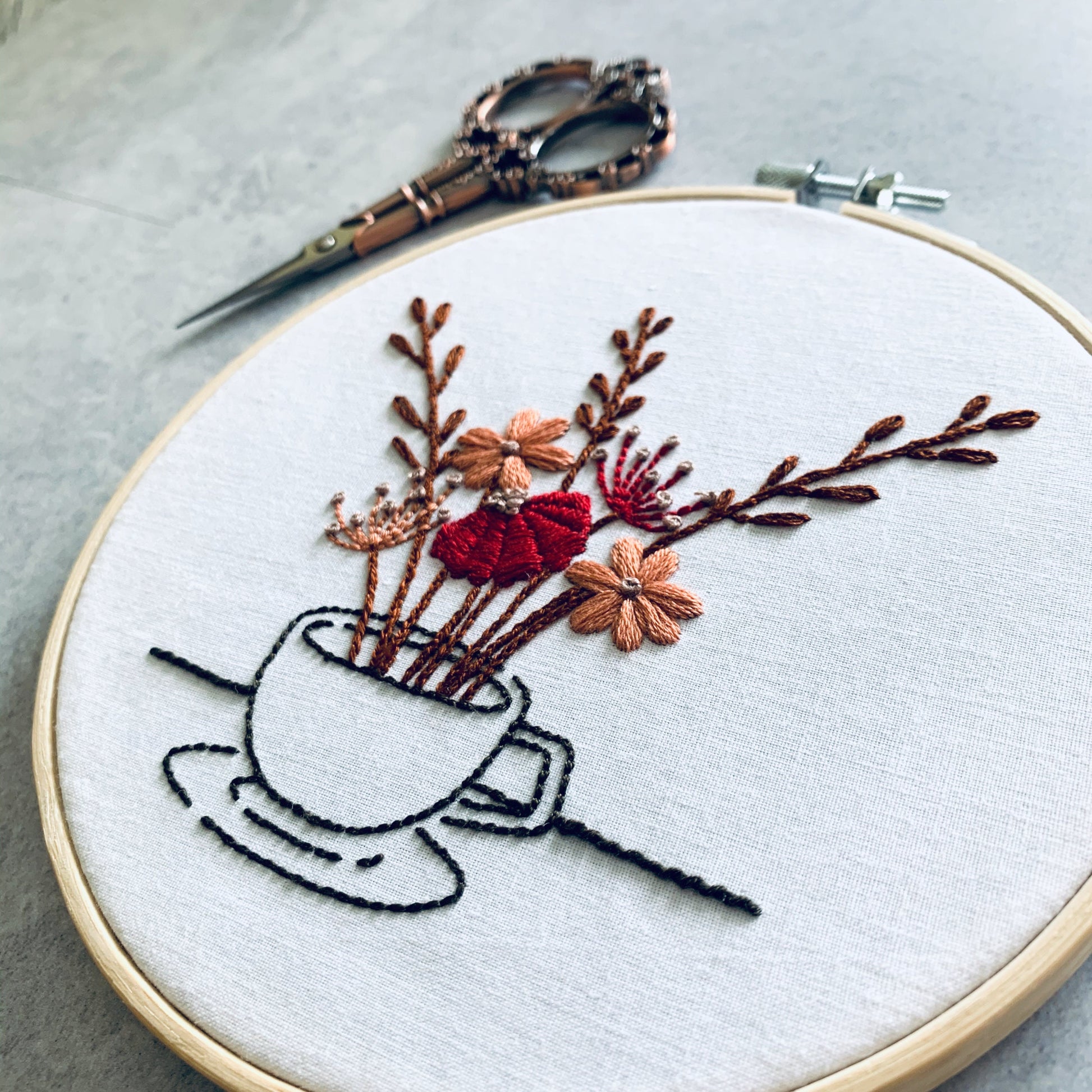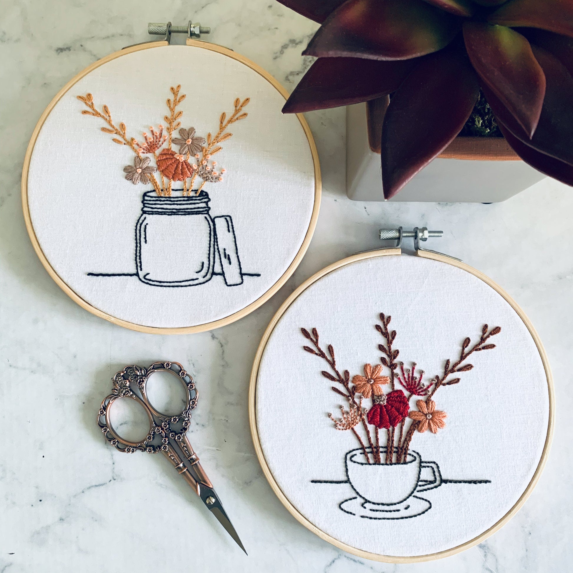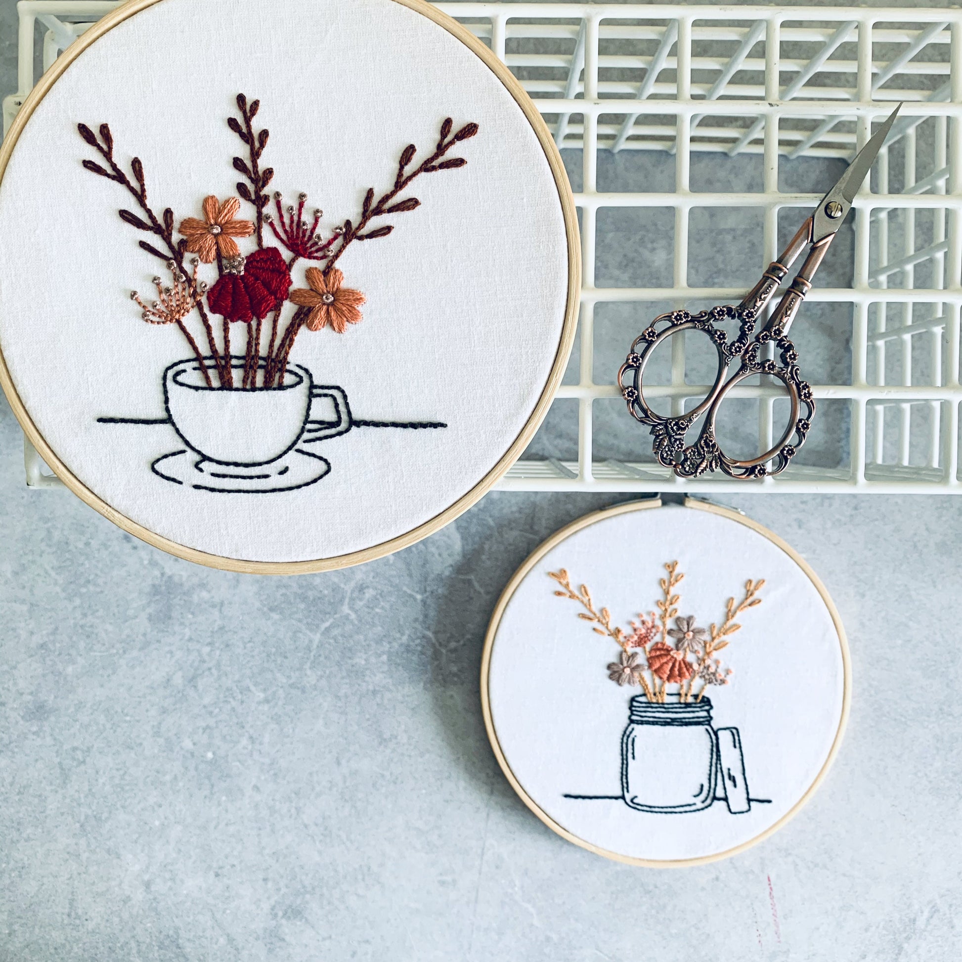 Digital download. 2-design teacup and jam jar. Embroidery hoop art pdf patterns and instruction booklet