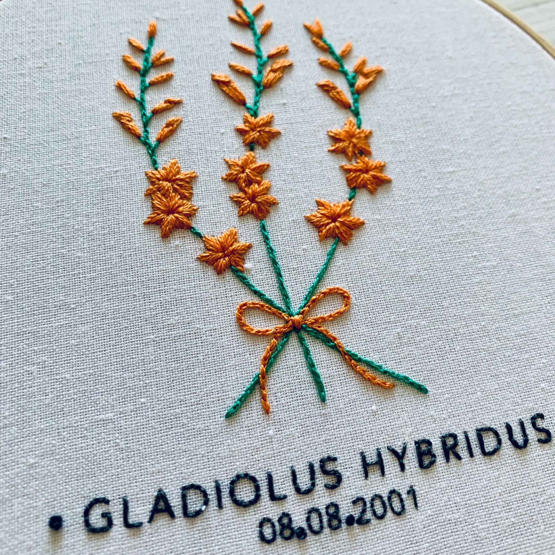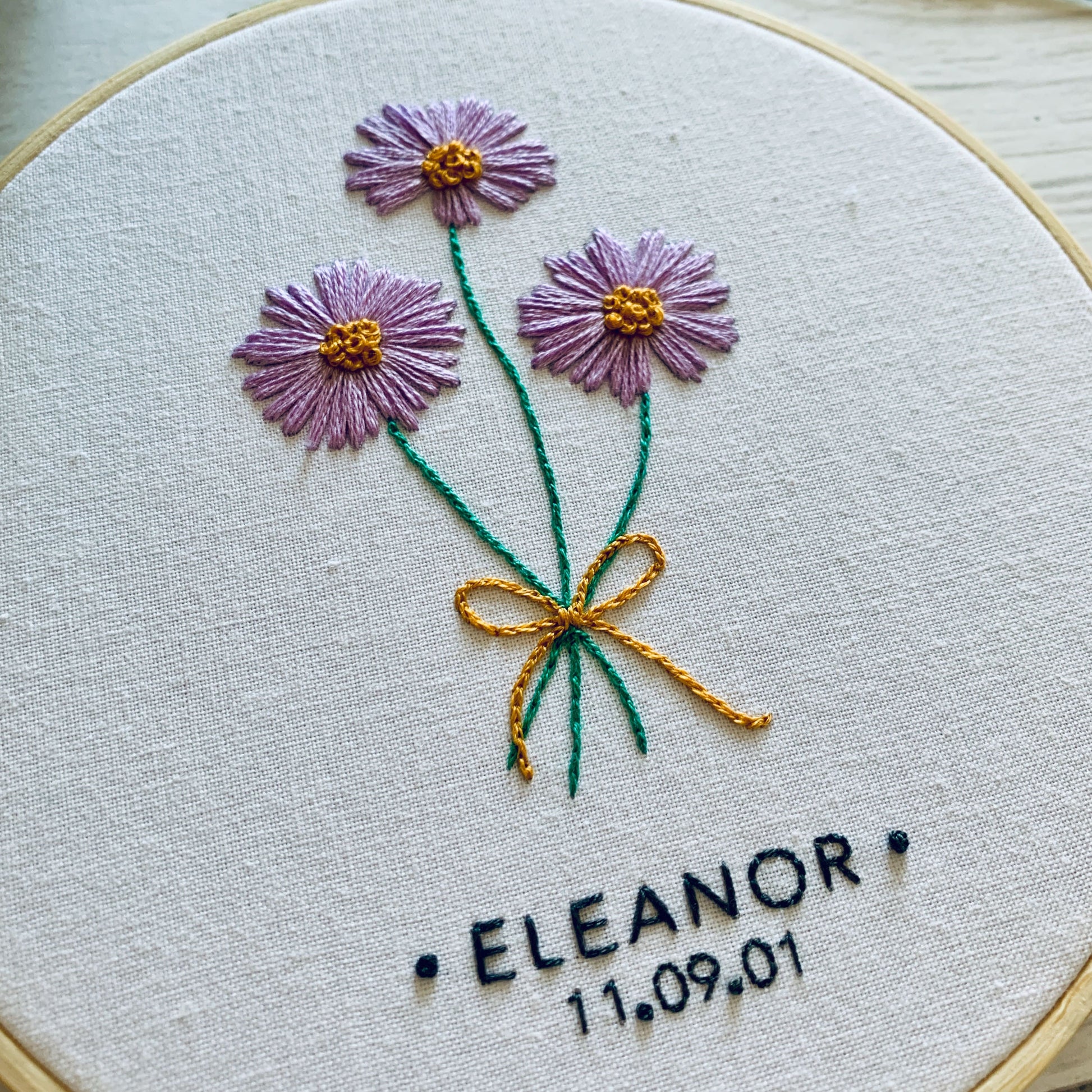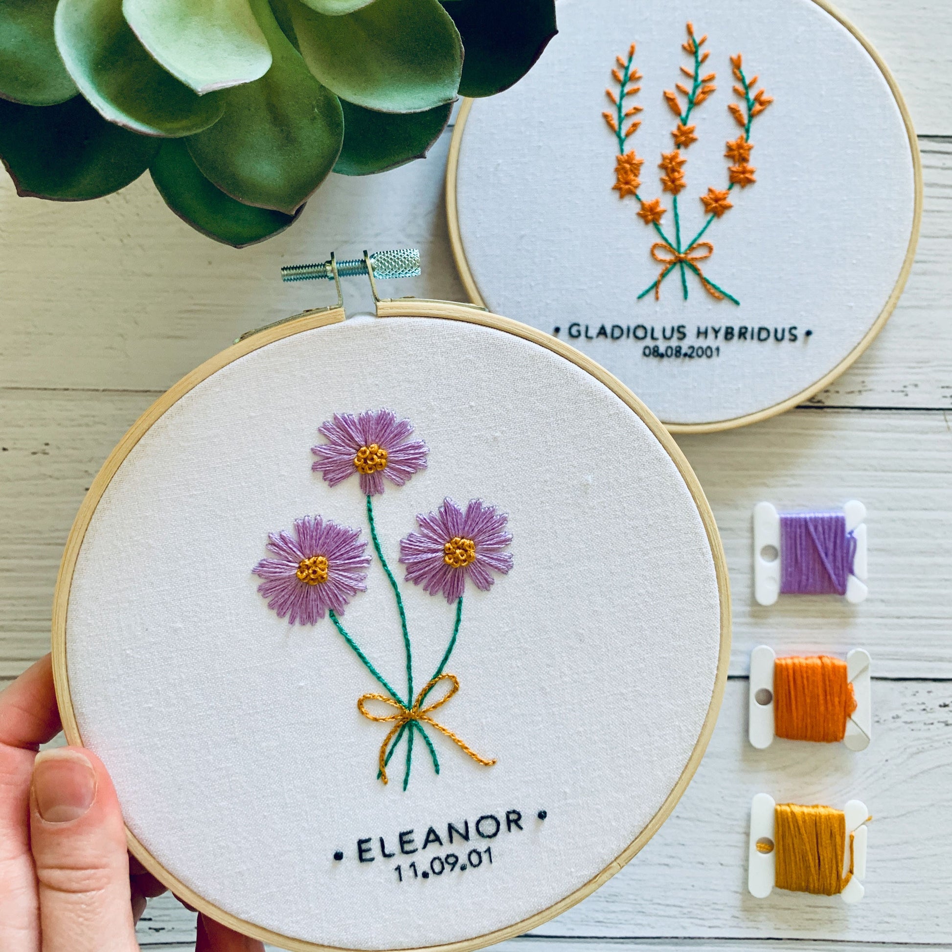 Digital download. Custom birth month floral embroidery hoop art PDF pattern with instructions. Birthday wall art project.
