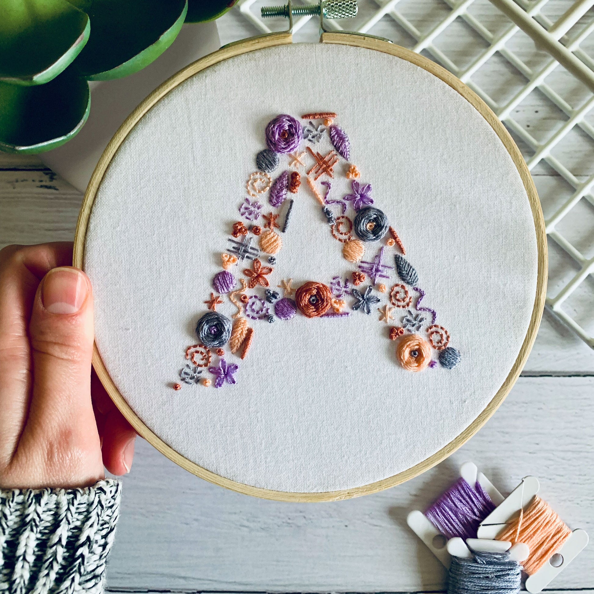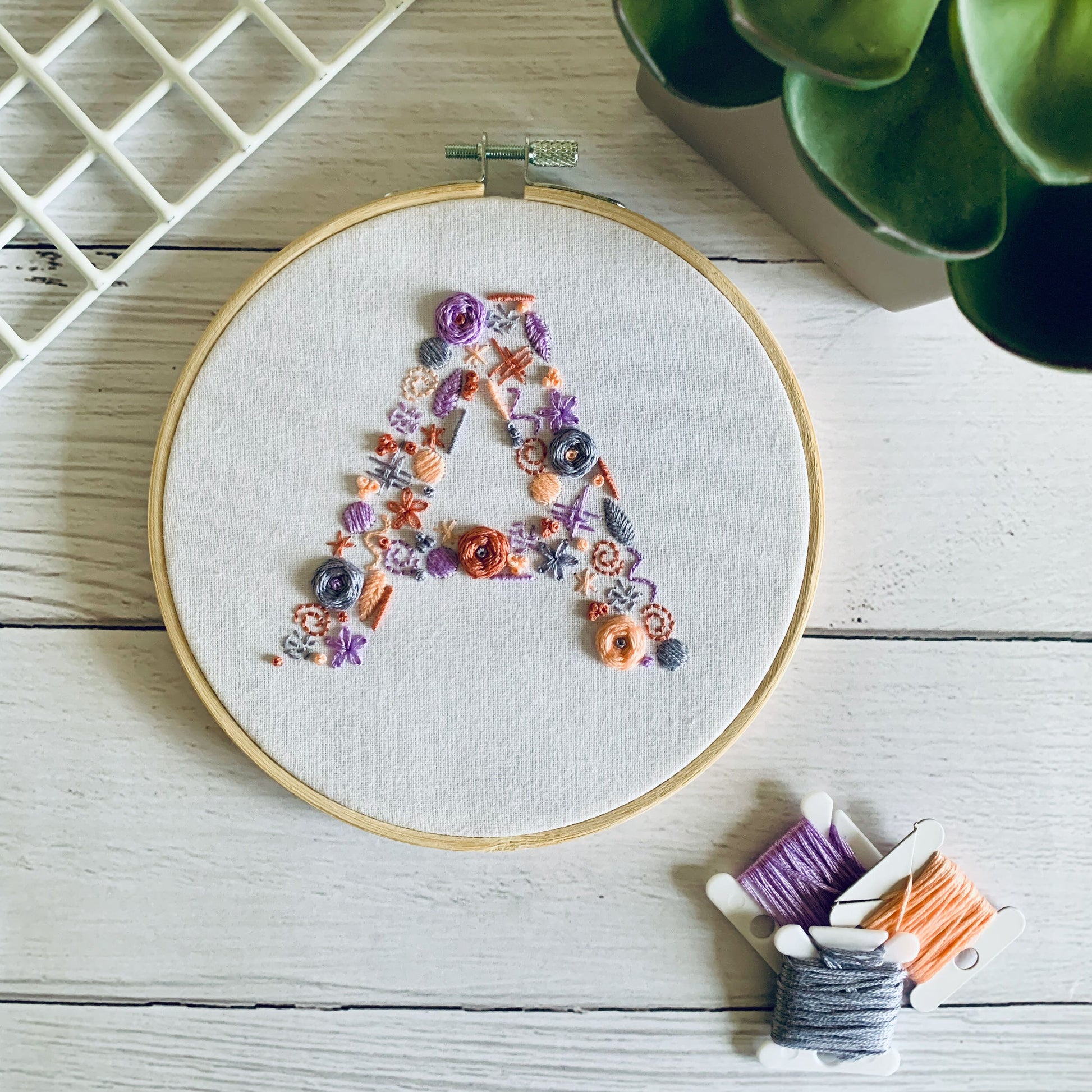 Digital download. Custom letter/initial embroidery hoop art PDF pattern with instructions. Personalised letter wall decor project