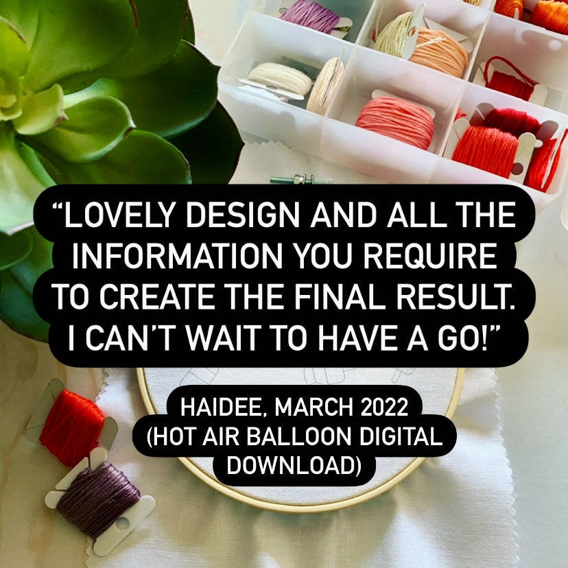- A digital pdf copy of the stitch and colour guide for reference (Emailed to you within 24hrs of purchase).