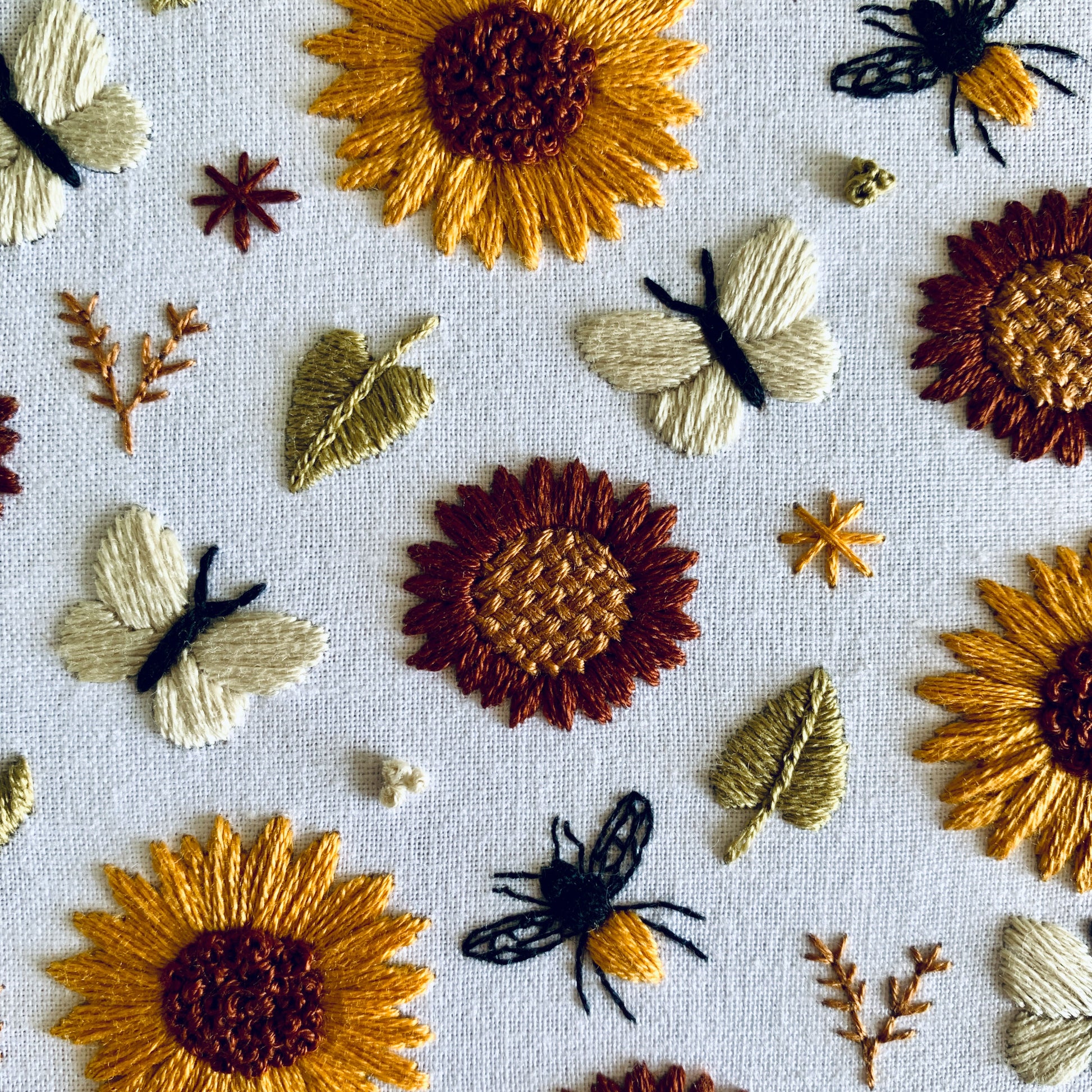 Digital download. Sunny sunflower embroidery hoop art PDF pattern with instructions. Wildlife floral beginner crewel wall decor project