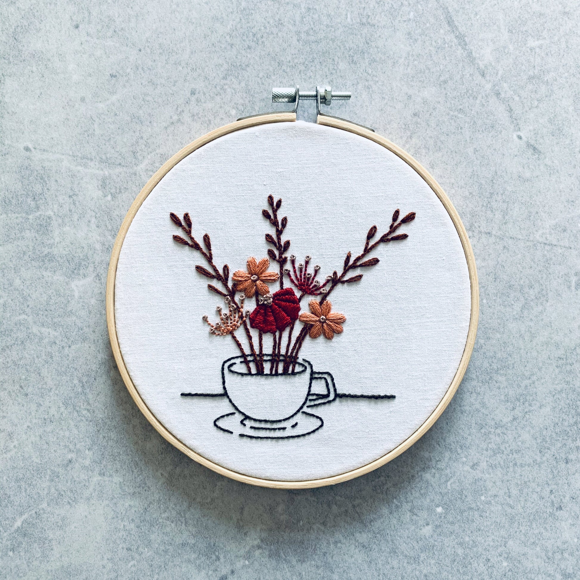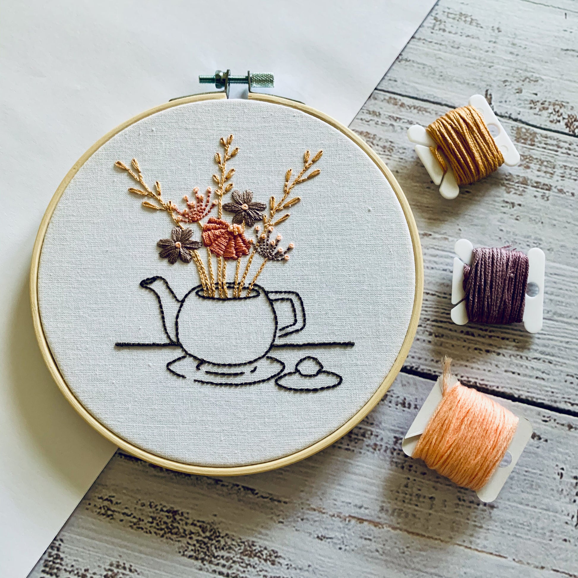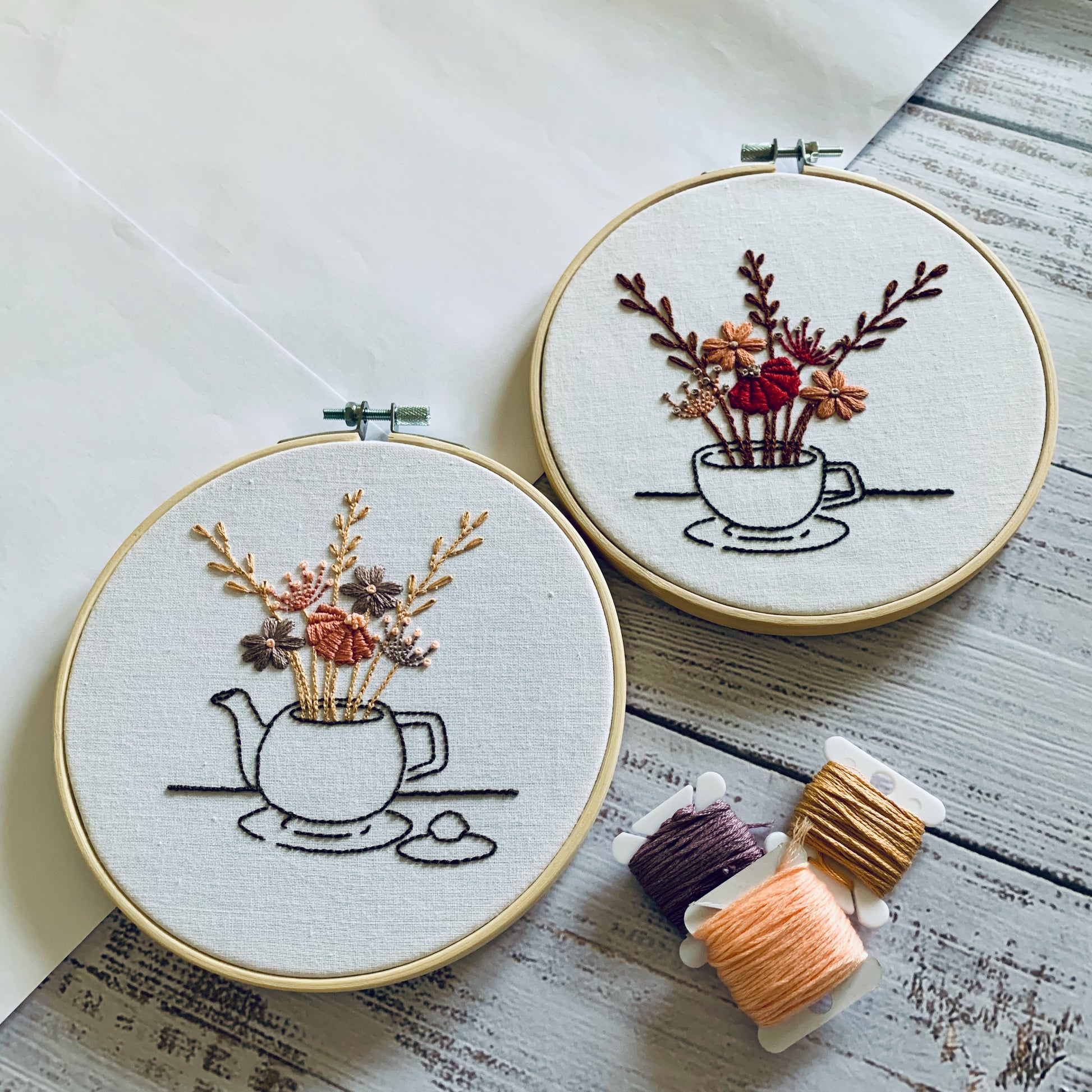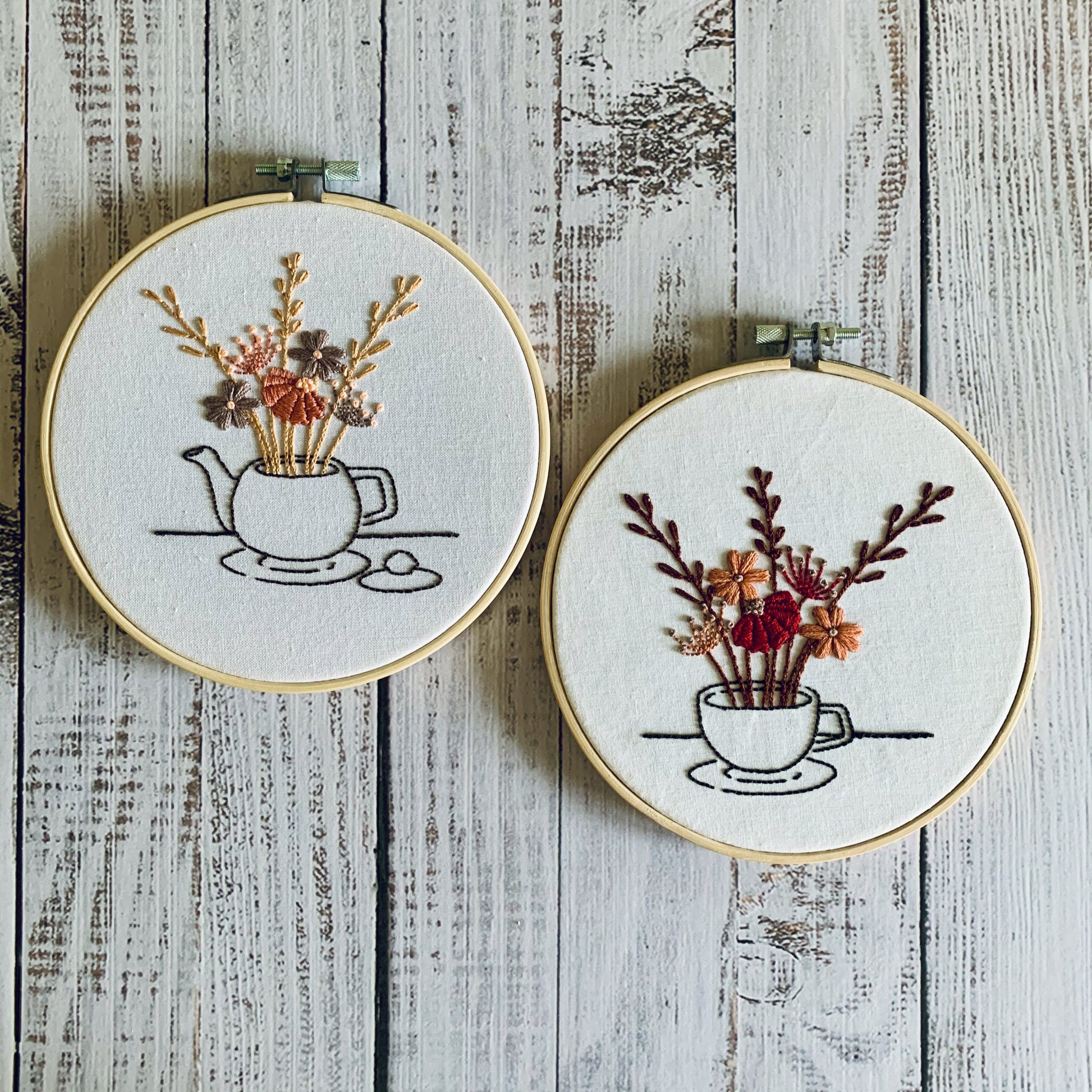 Digital download. Teacup and teapot embroidery hoop art PDF pattern with instructions