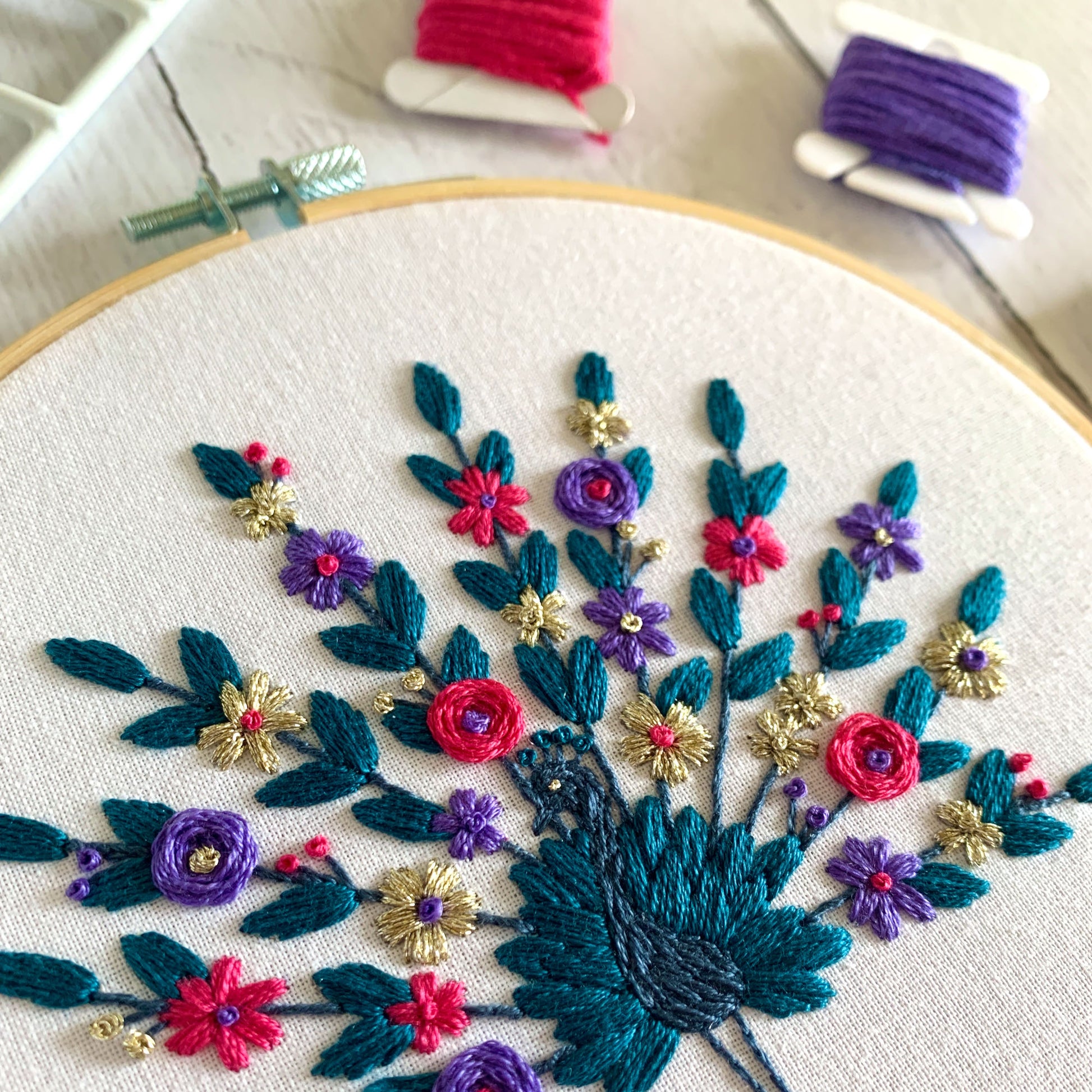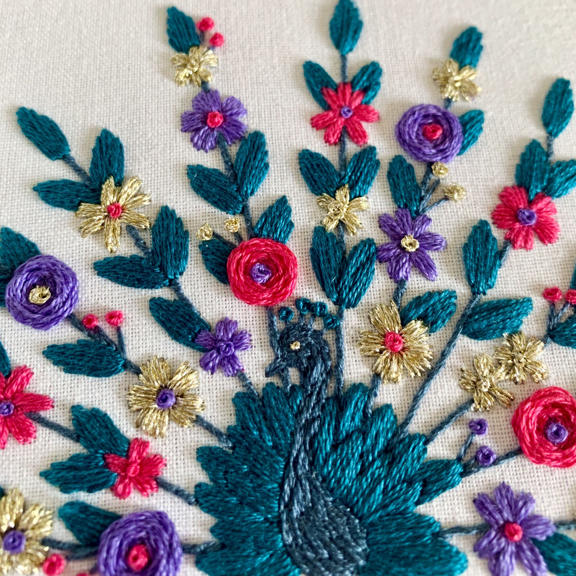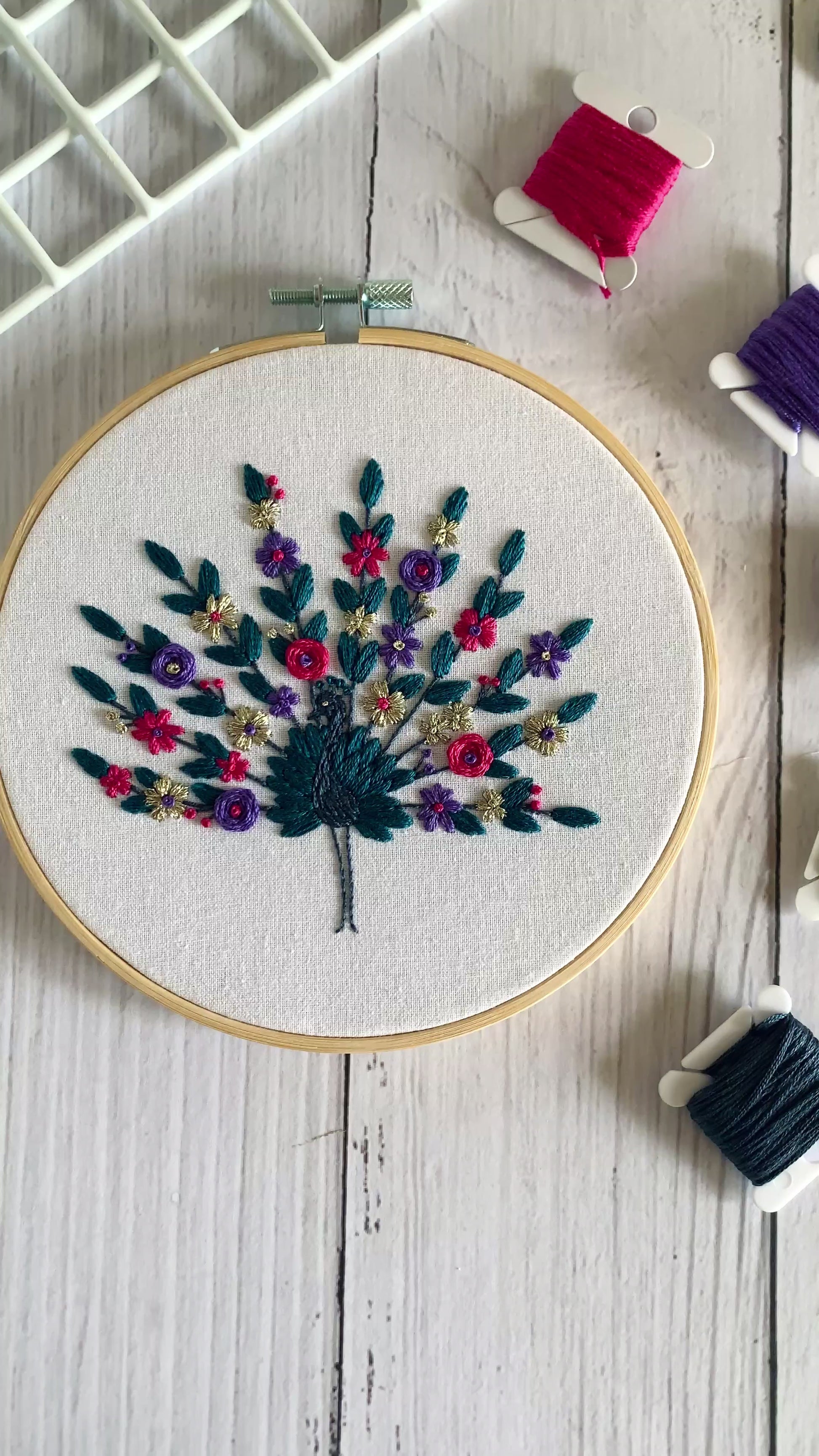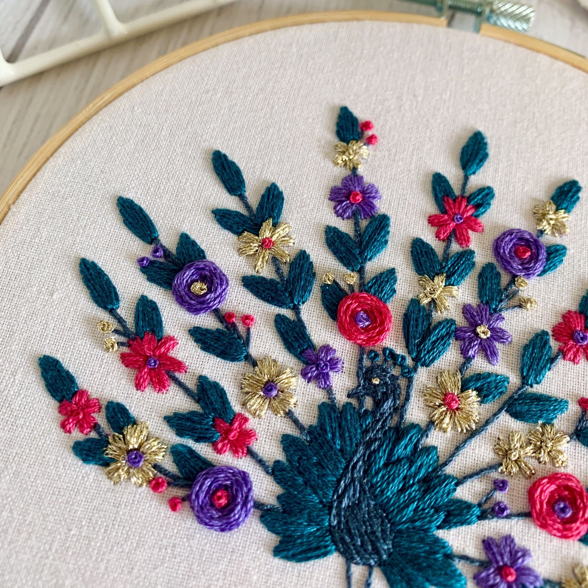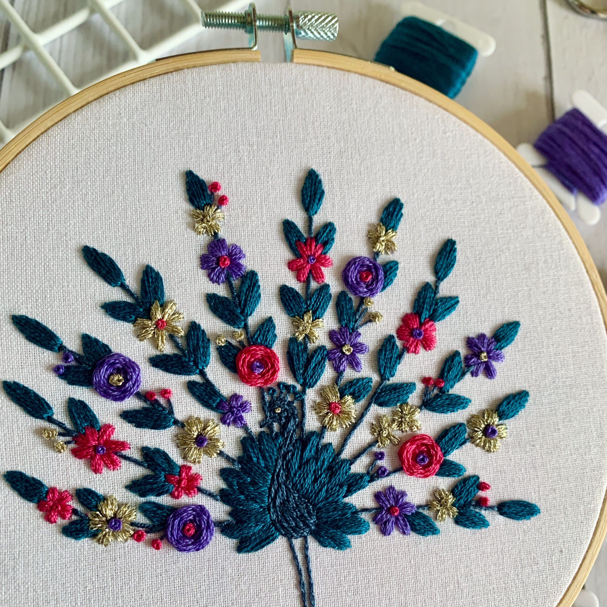 Digital Pattern - Floral Peacock Embroidery Pattern. PDF instant download with instructions.