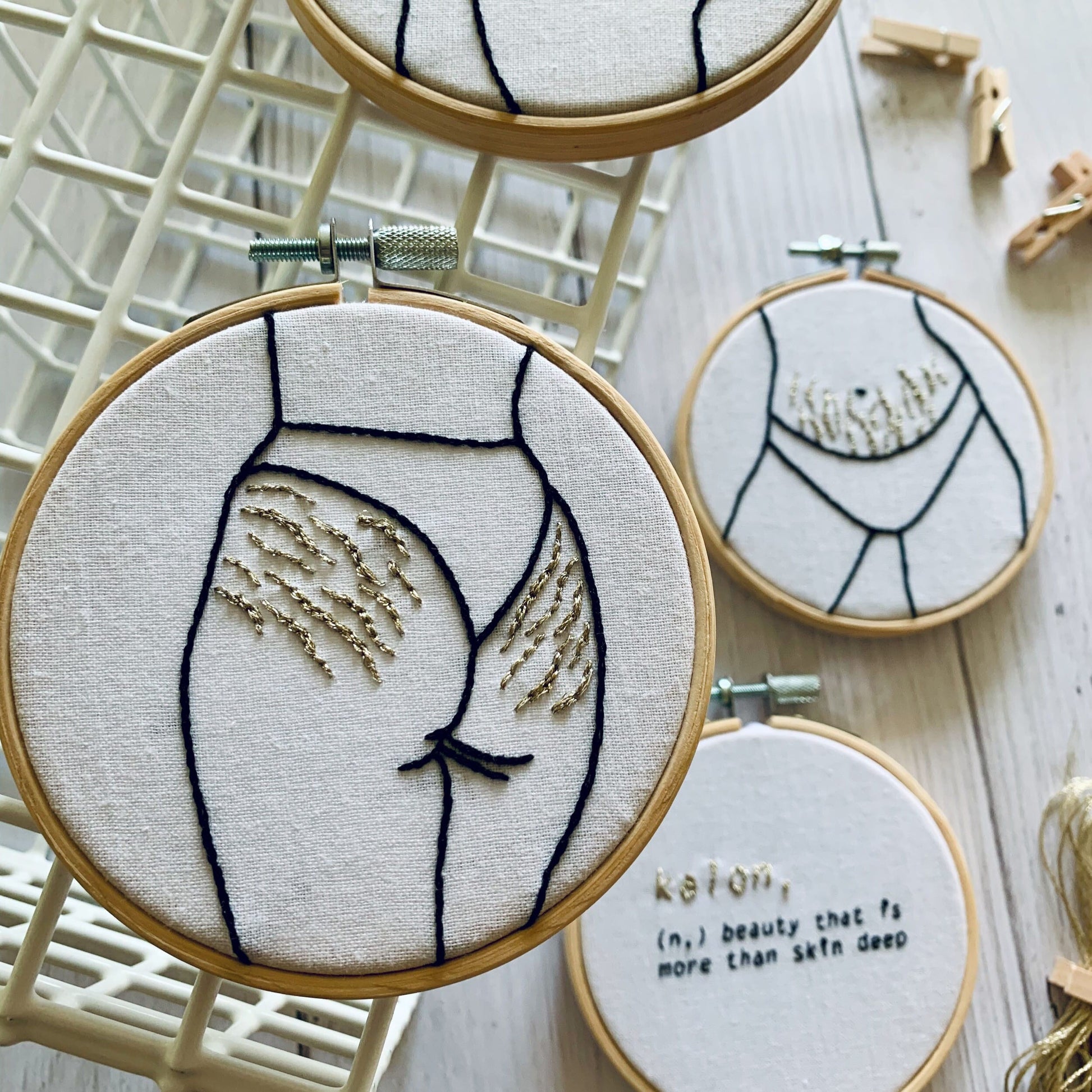 Full DIY embroidery kit. Body positive stretch marks craft wall art decor. Choose from 1, 2,3 or 4 hoops.
