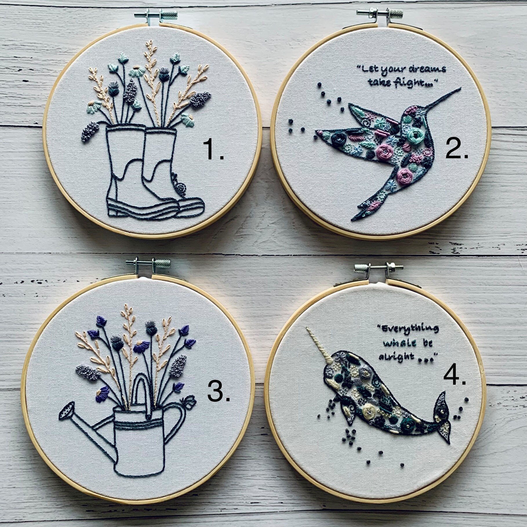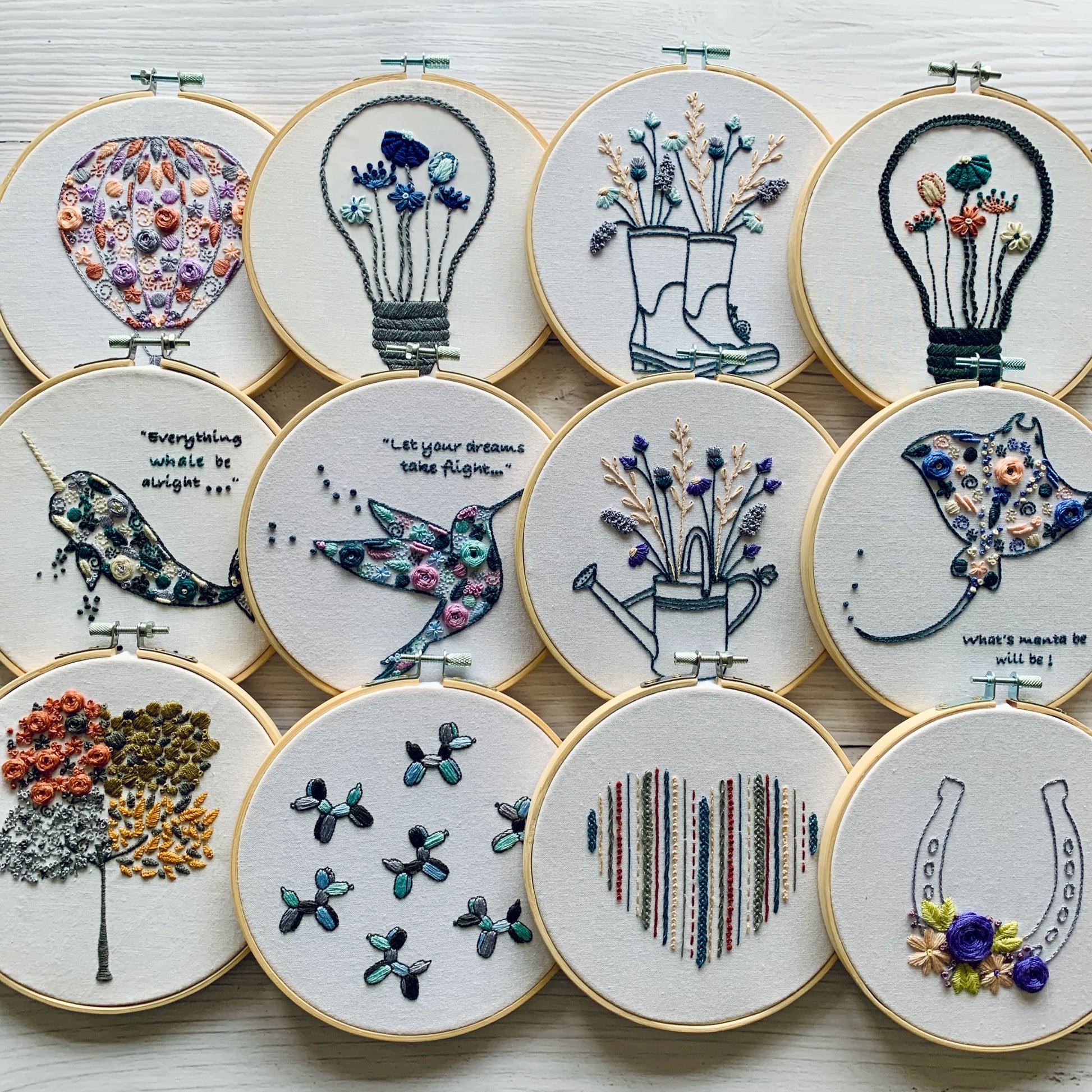 Full embroidery kit. 2-design hoop art. Personalise your kit and choose your designs! Modern and unique crewel designs for mindfulness