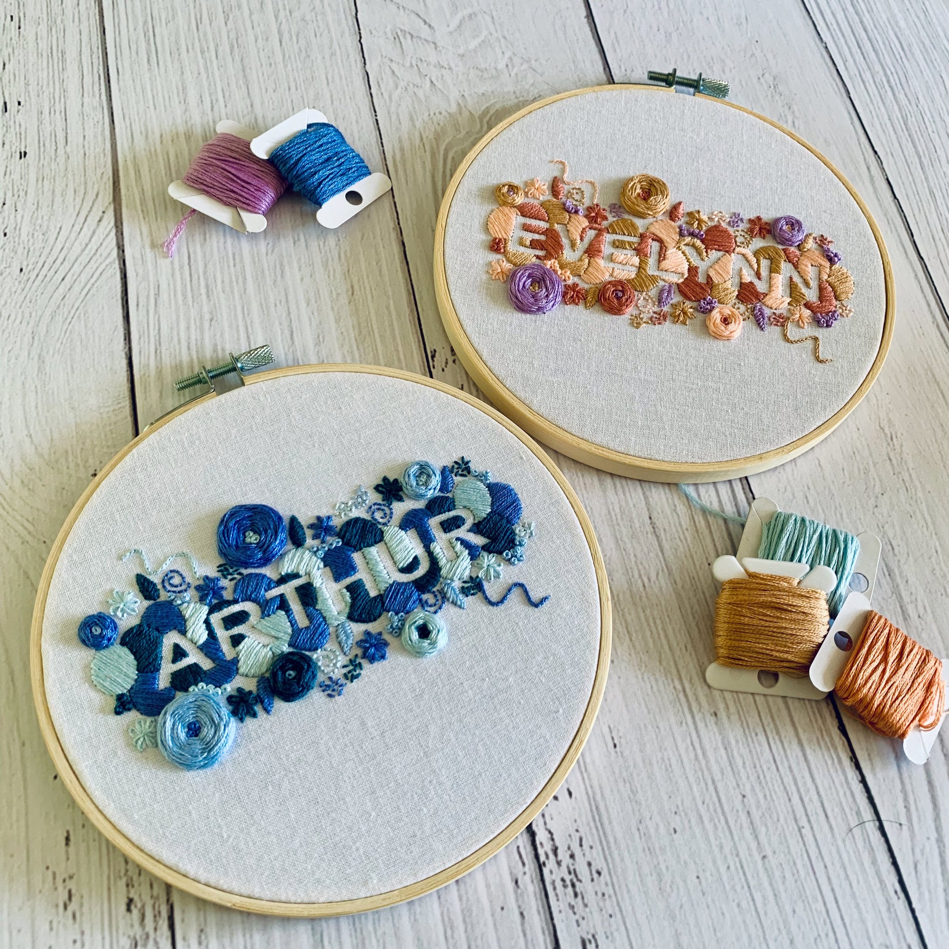 Full embroidery kit. Custom name embroidery hoop art. Choose your colours. DIY craft project for bedroom art