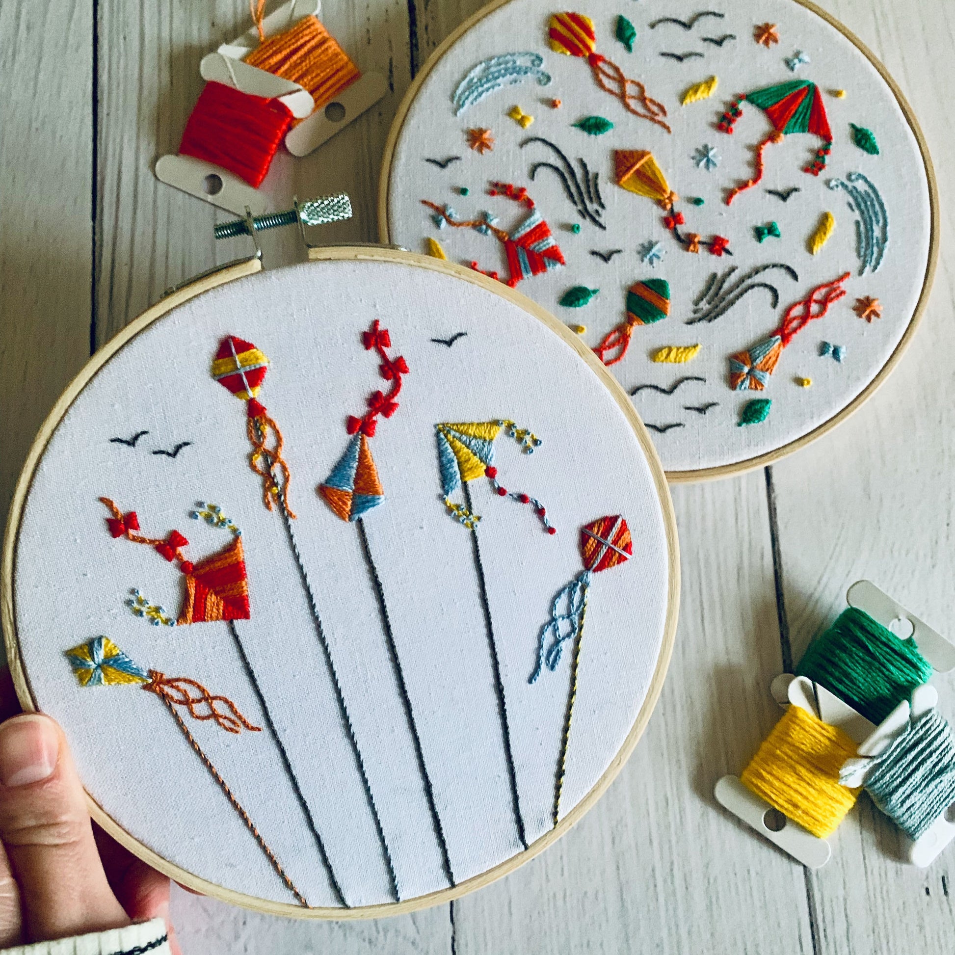 Full embroidery kit. Flying kites DIY beginner craft. Choose your design. Adult birds anxiety/stress relief gift
