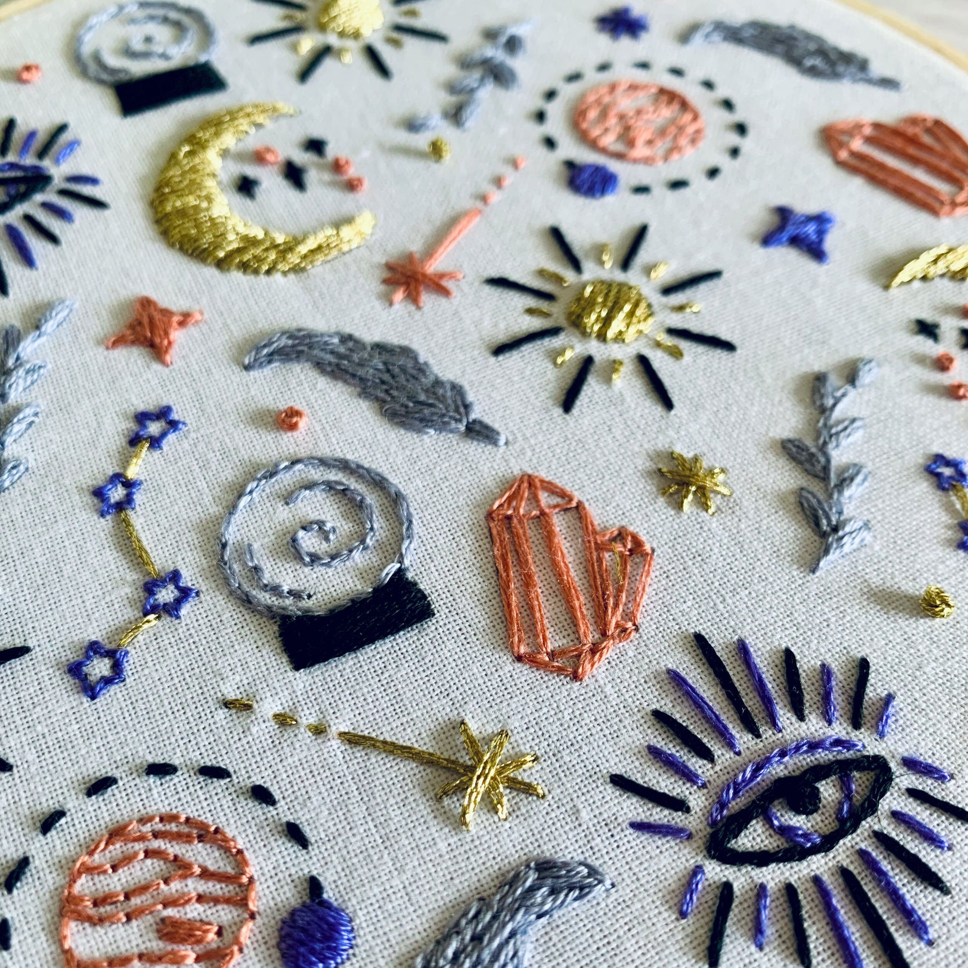 Full embroidery kit. Mystic, witchy DIY beginner craft. Adult astrology anxiety/stress relief gift