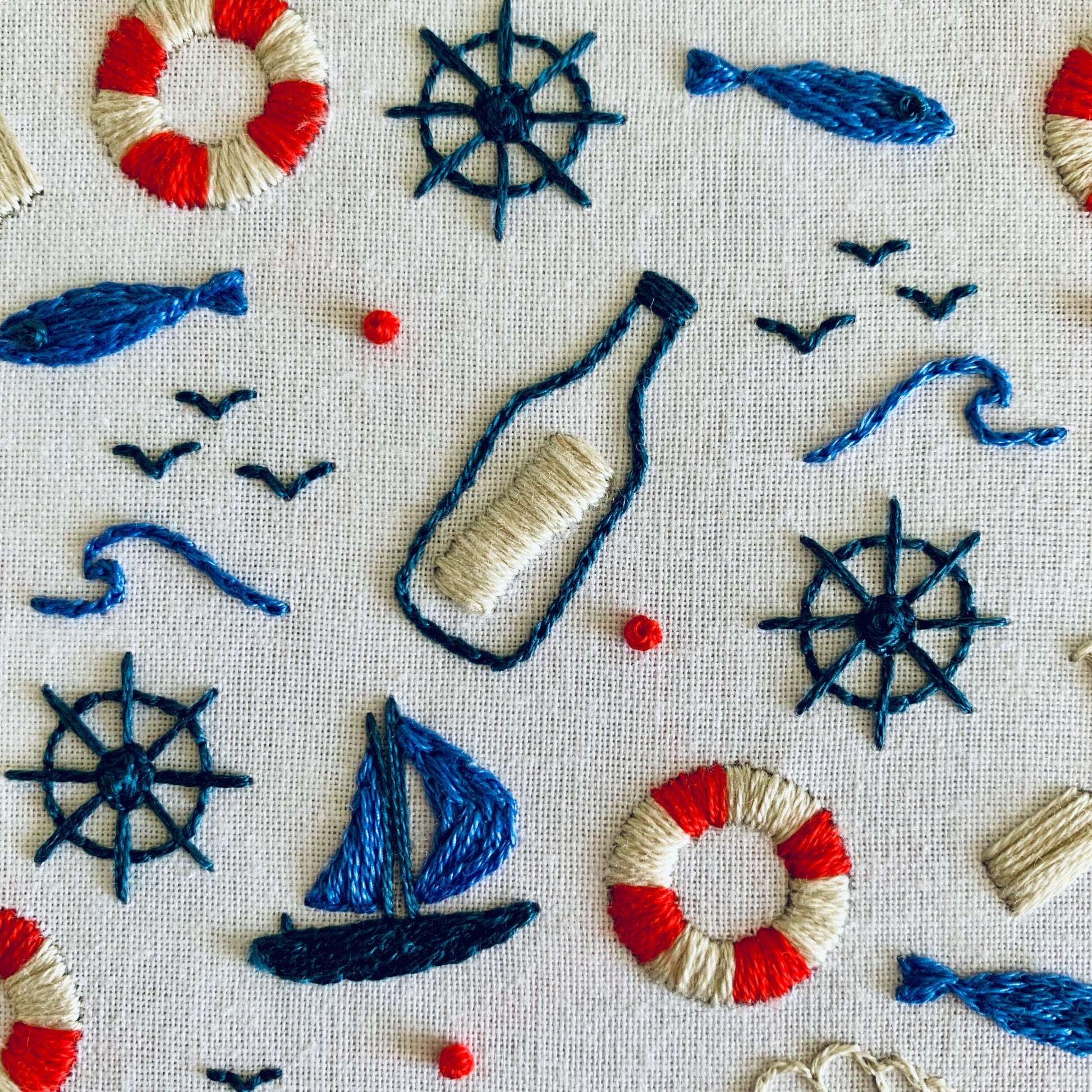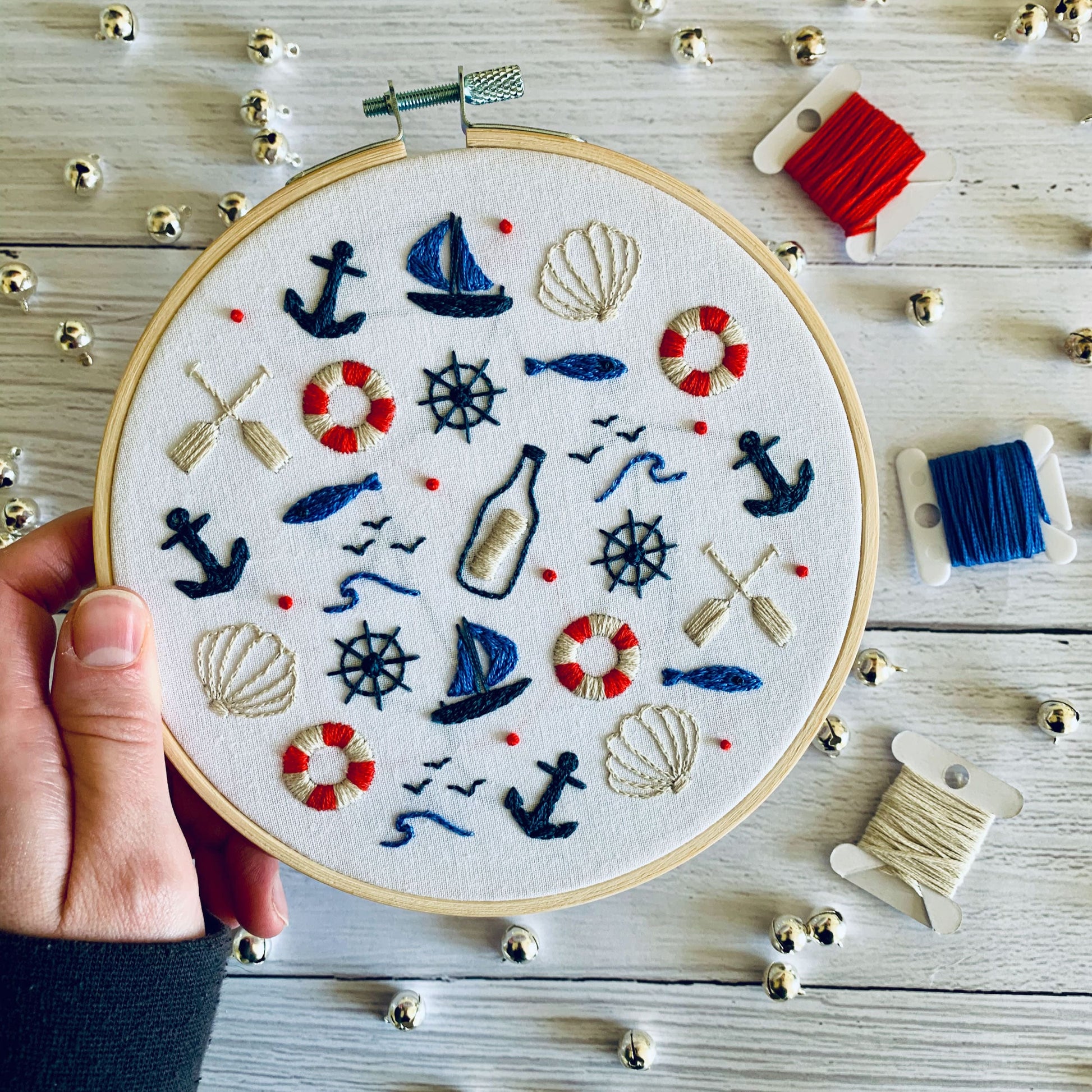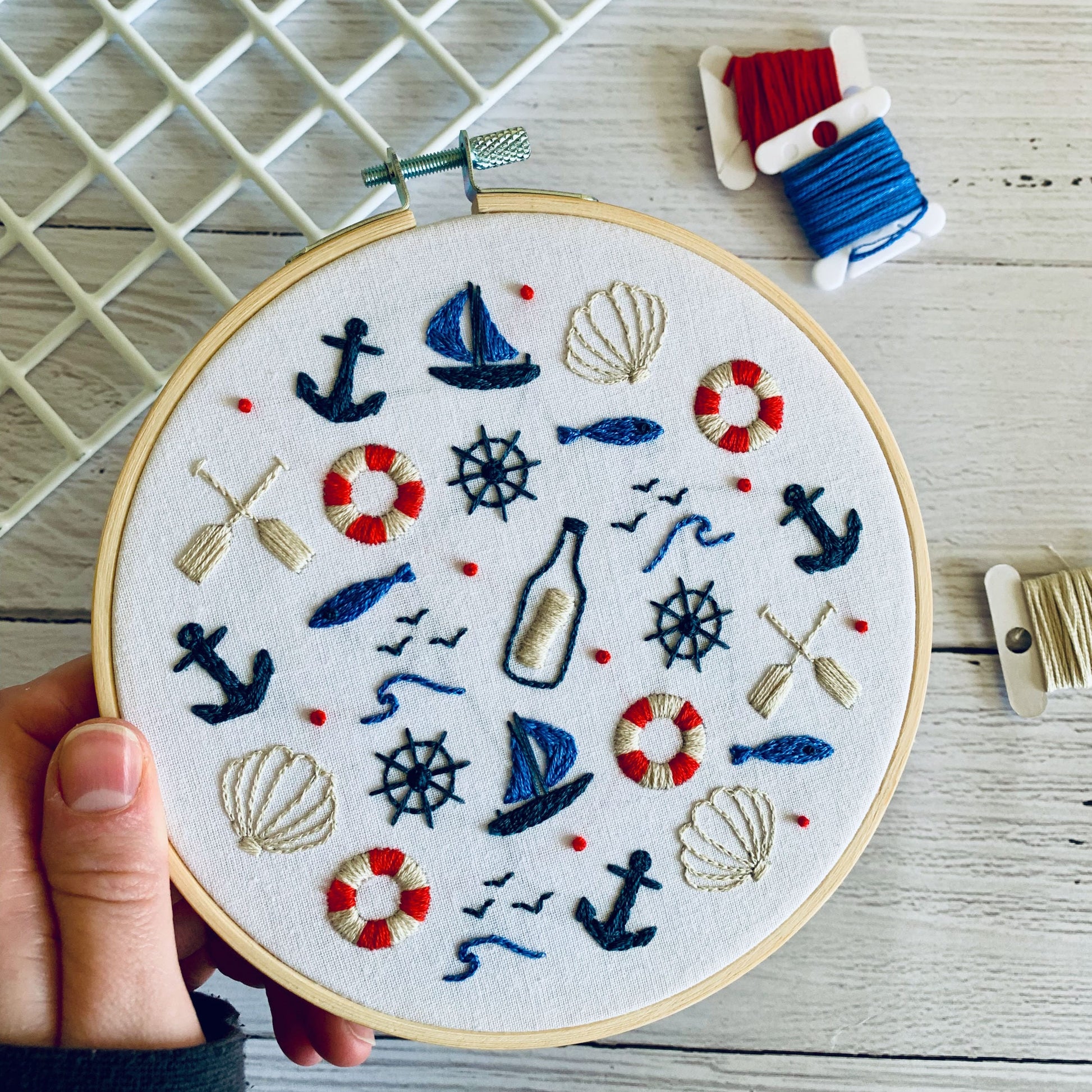Full embroidery kit. Nautical DIY beginner hoop art craft. Adult anxiety/stress relief seaside gift