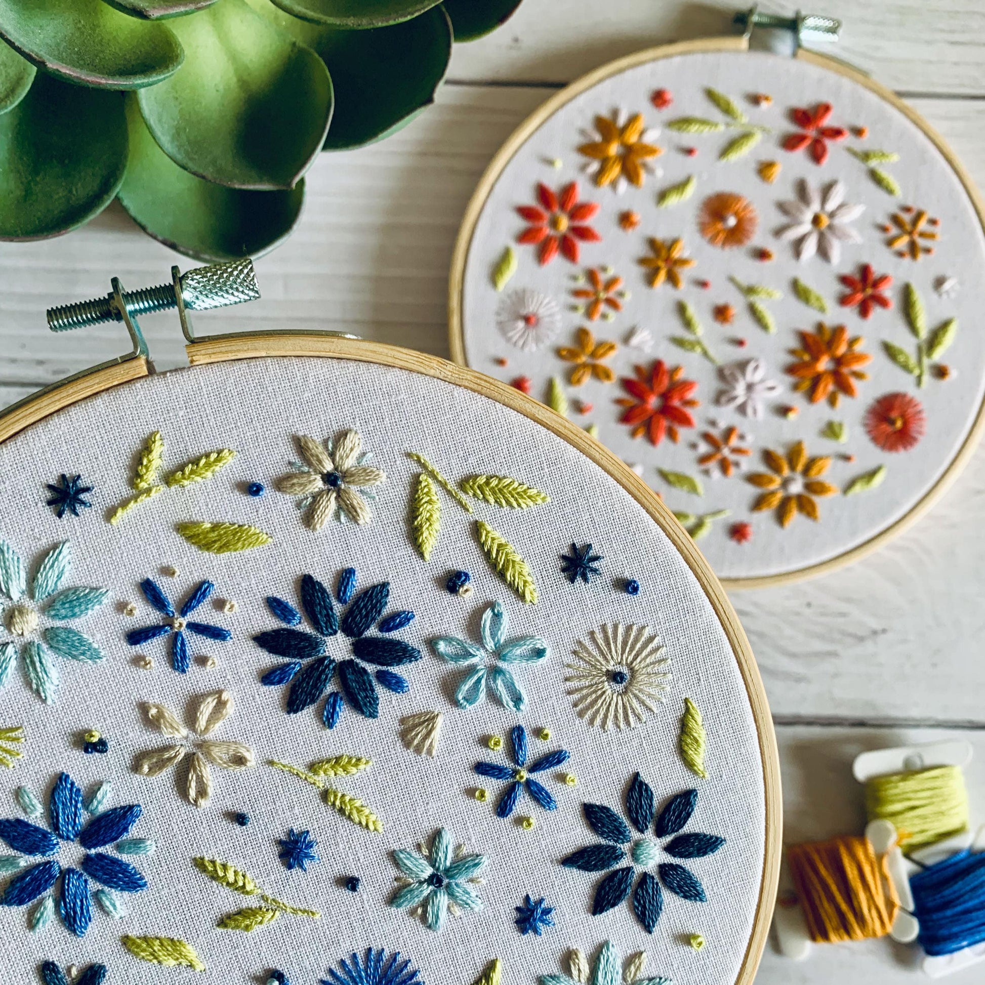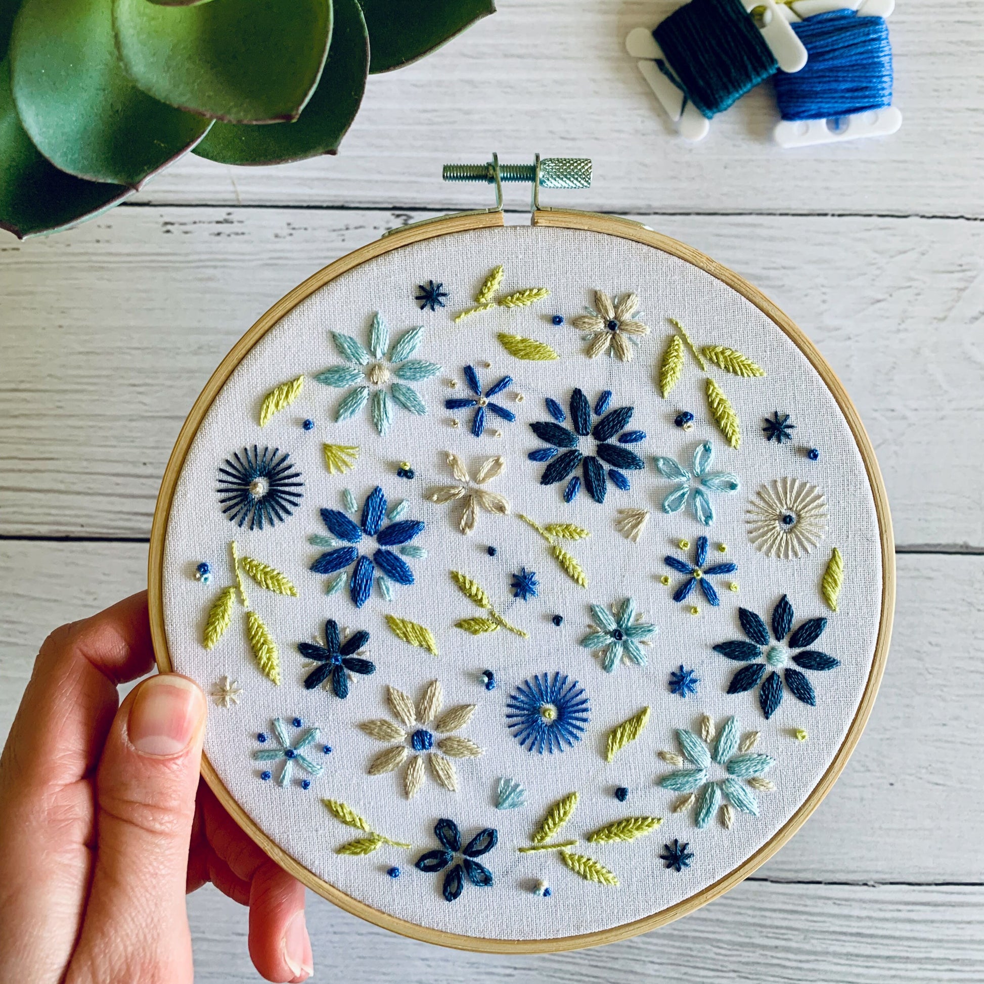 Full embroidery kit. Spring floral DIY beginner hoop art craft. Choose your colours! Adult anxiety/stress relief summer flowers gift