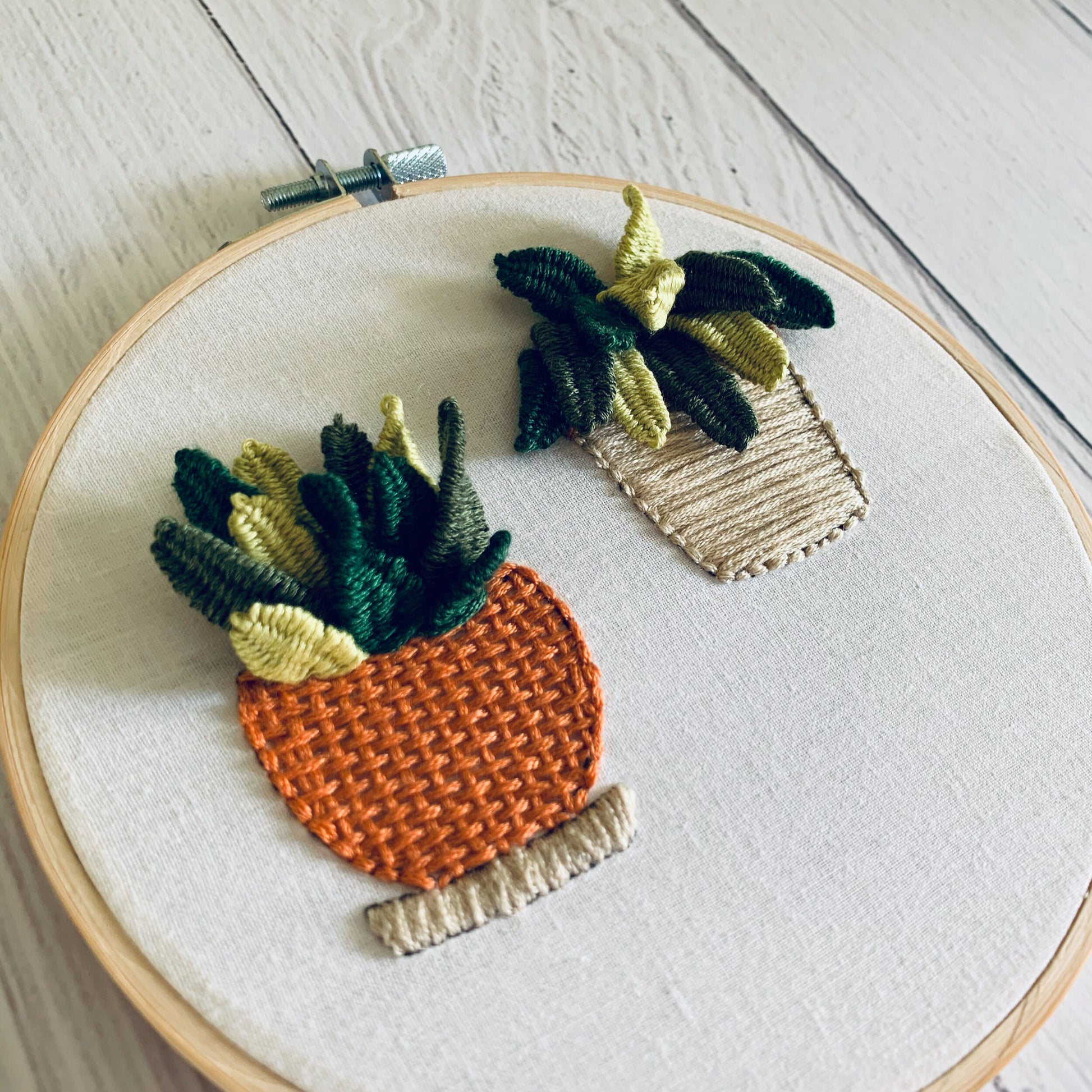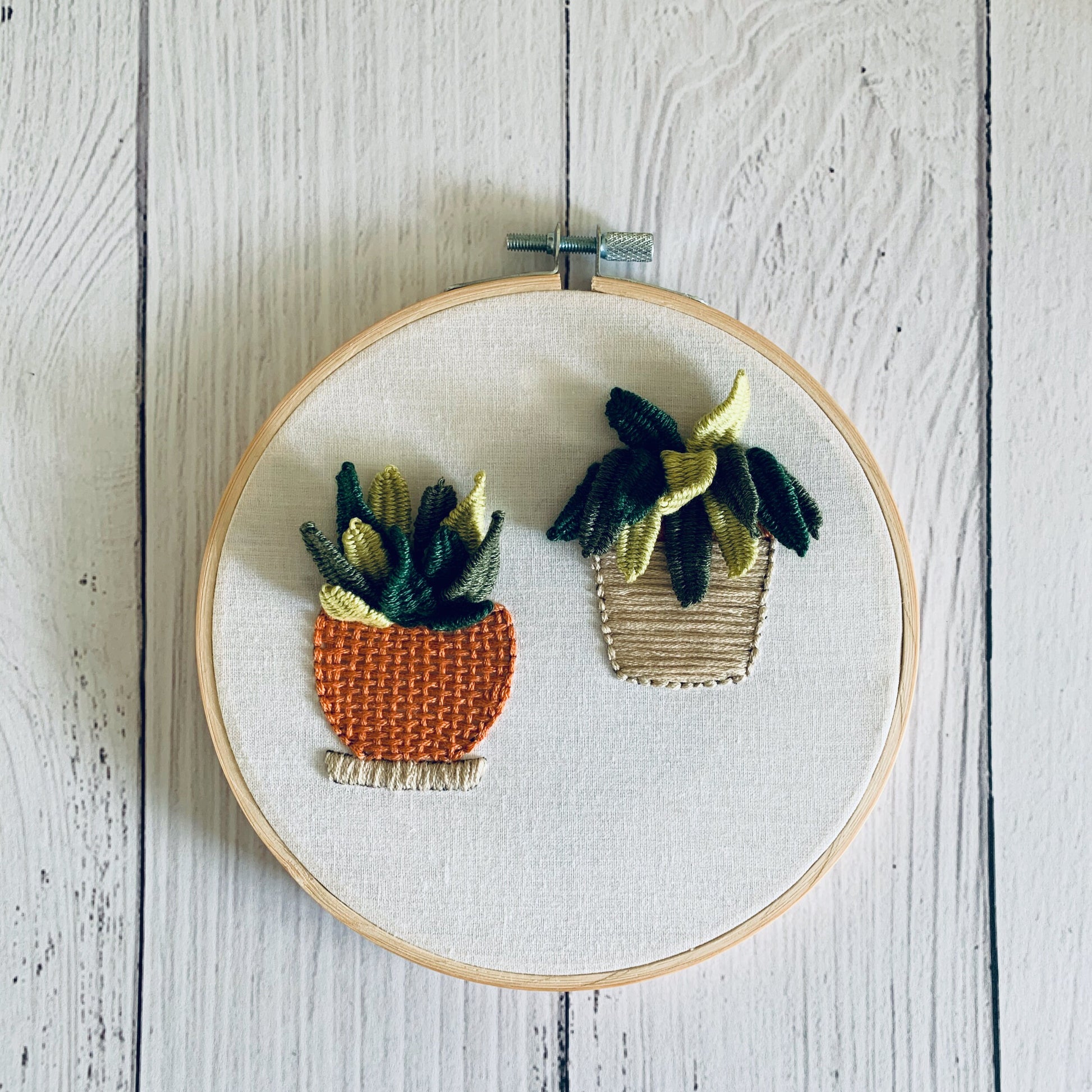 Full embroidery kit. Succulent hoop art. 3D hand sewing project