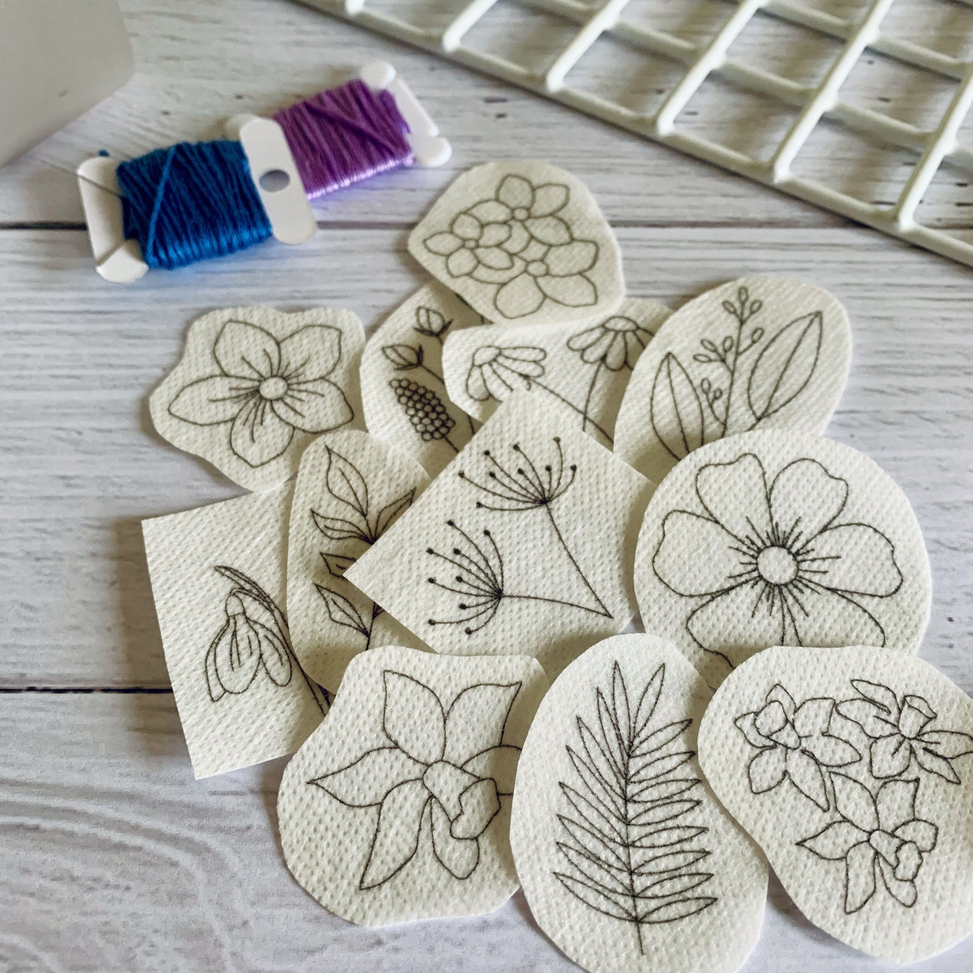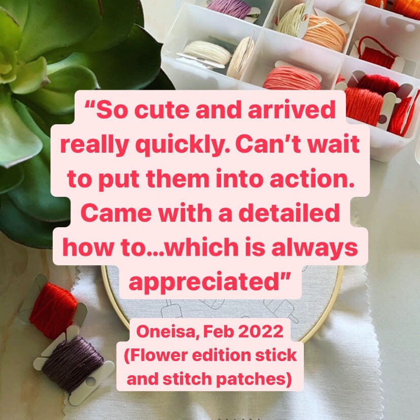 Stick and stitch embroidery patches. Flower edition. Stick on and sew. Customise T-shirts, sweaters, bags, cushions etc.