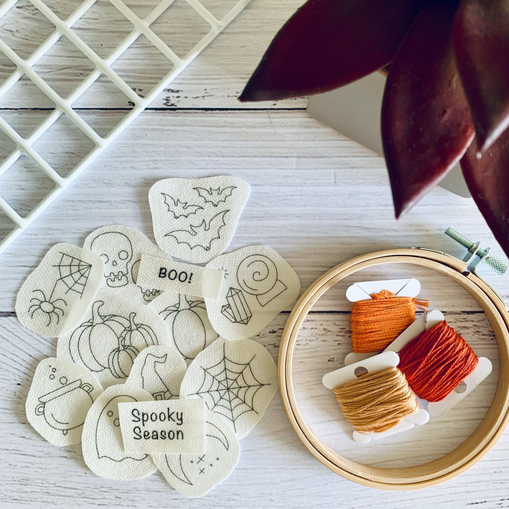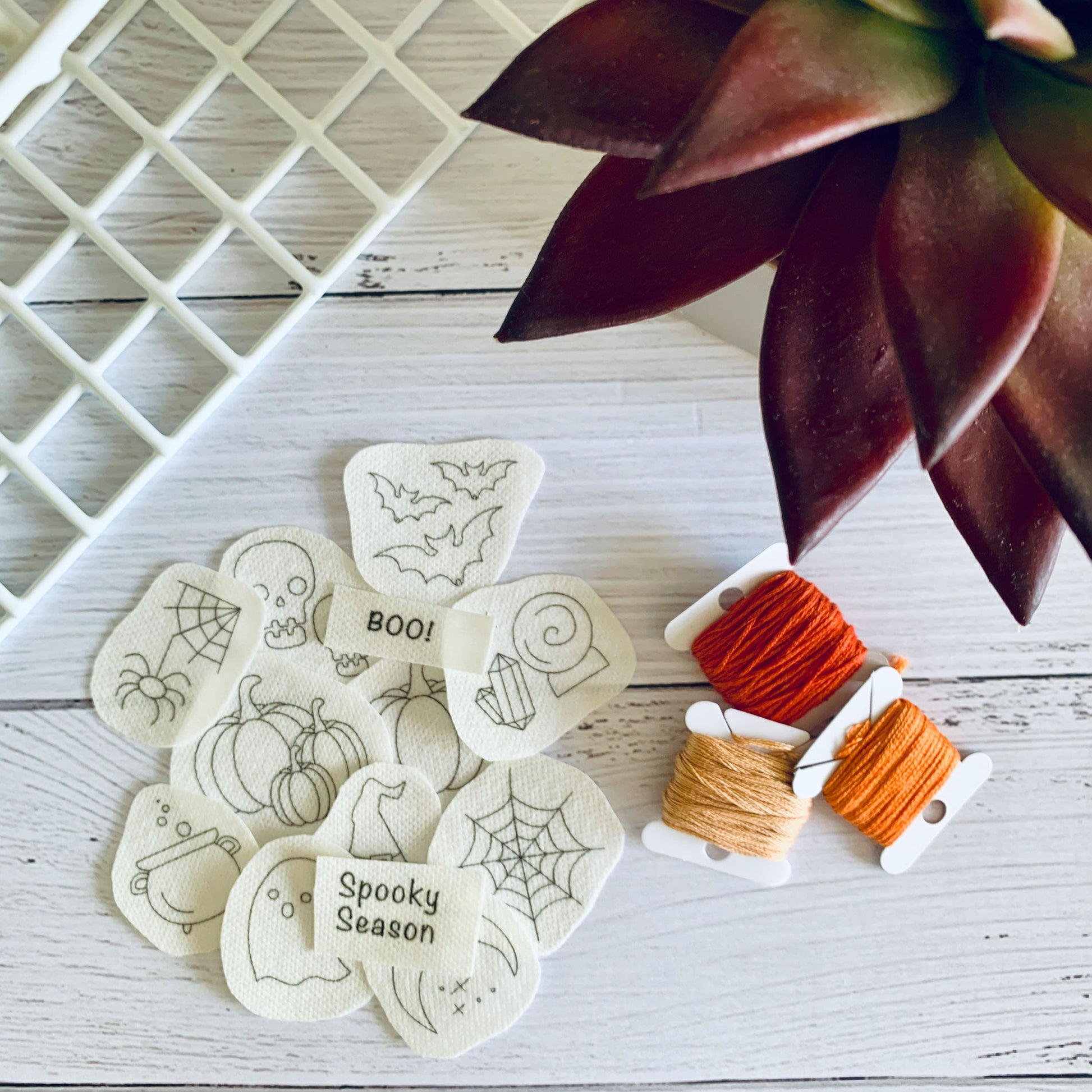 Stick and stitch embroidery patches. Halloween spooky edition. Stick on and sew. Customise T-shirts, sweaters, bags, cushions etc.