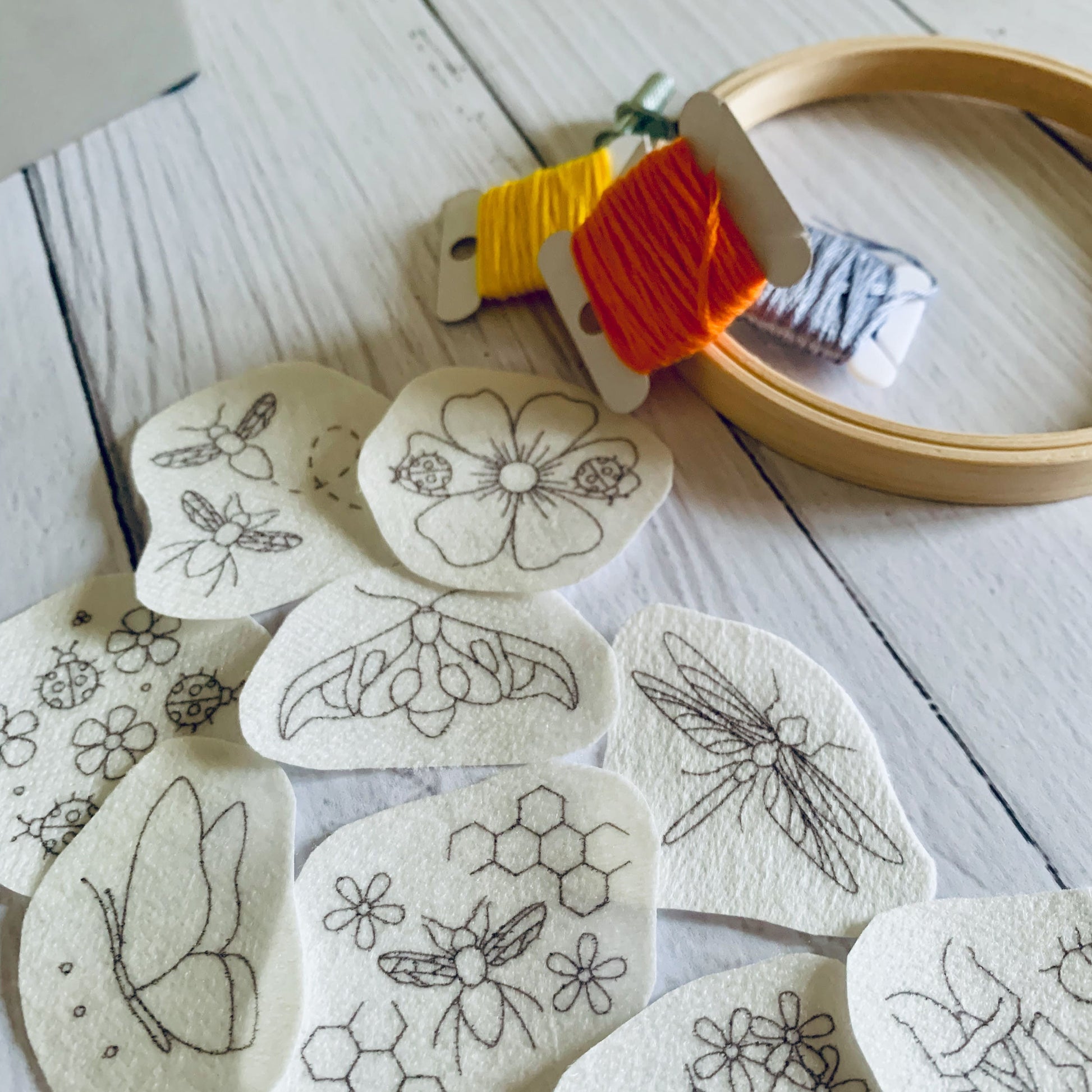 Stick and stitch embroidery patches. Insect nature edition. Stick on and sew. Customise T-shirts, sweaters, bags, cushions etc.