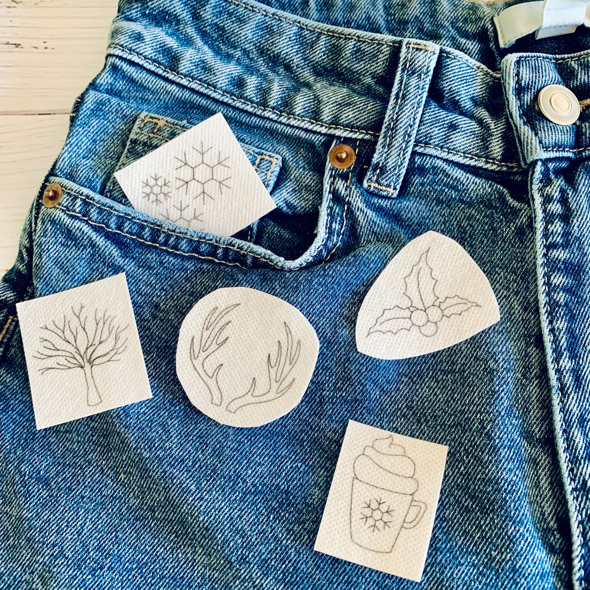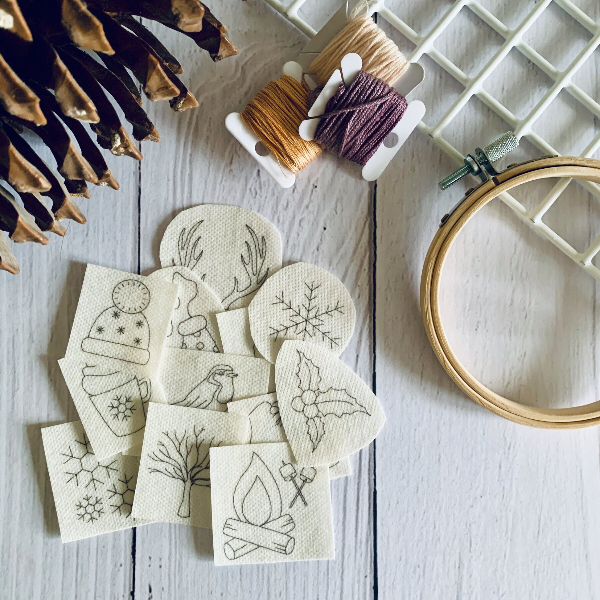 Stick and stitch embroidery patches. Winter hygge edition. Stick on and sew. Customise T-shirts, sweaters, bags, cushions etc.
